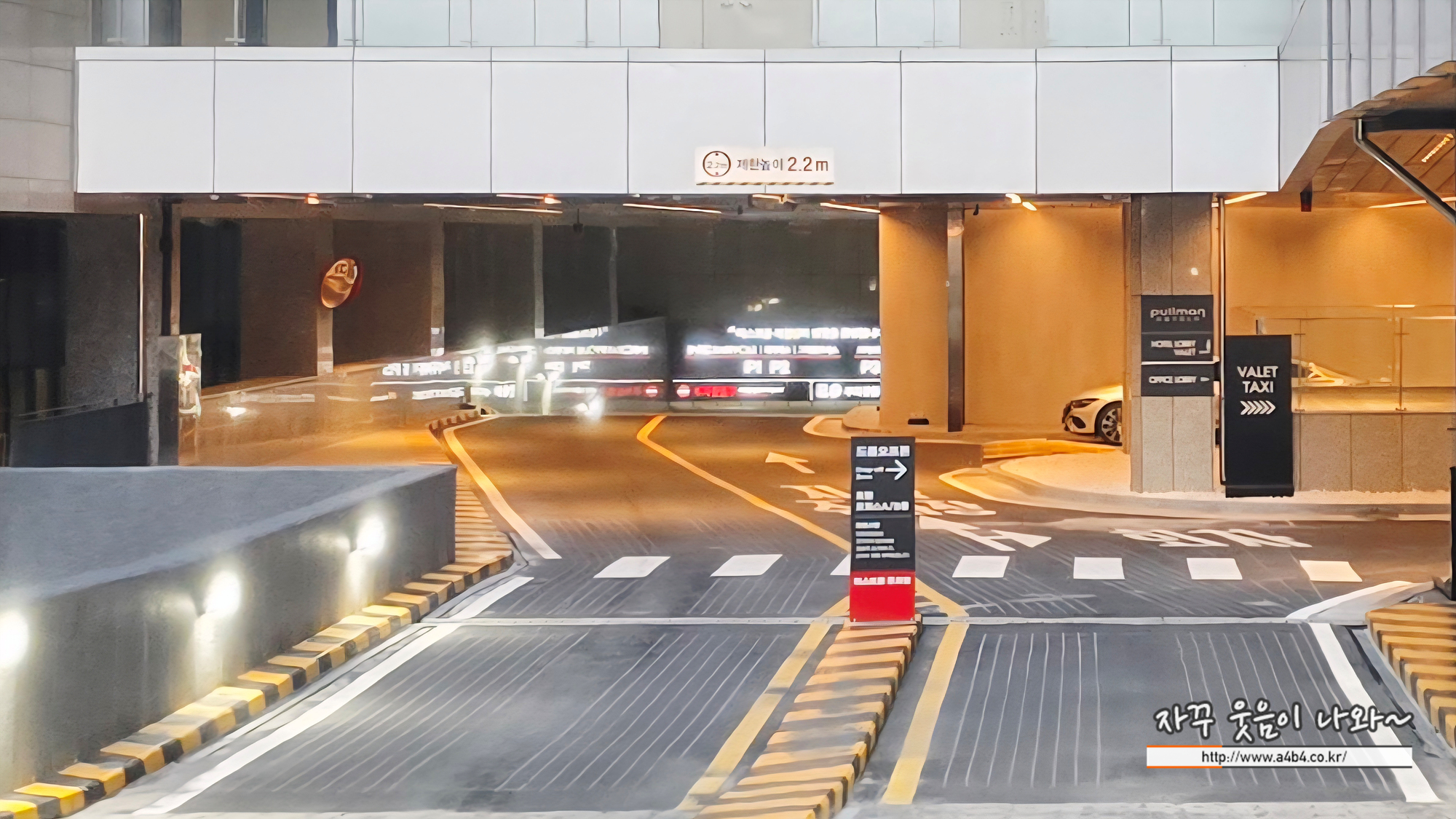 조금 더내려오면 다시 두 개의 길이 나오고요. 오른쪽은 택시정류장과 풀만 앰배서더 서울 이스트폴 발렛파킹 장소가 나옵니다. 일반 주차 희망하시면 바로 직진하셔서 왼쪽 아래로 내려가시면 됩니다.