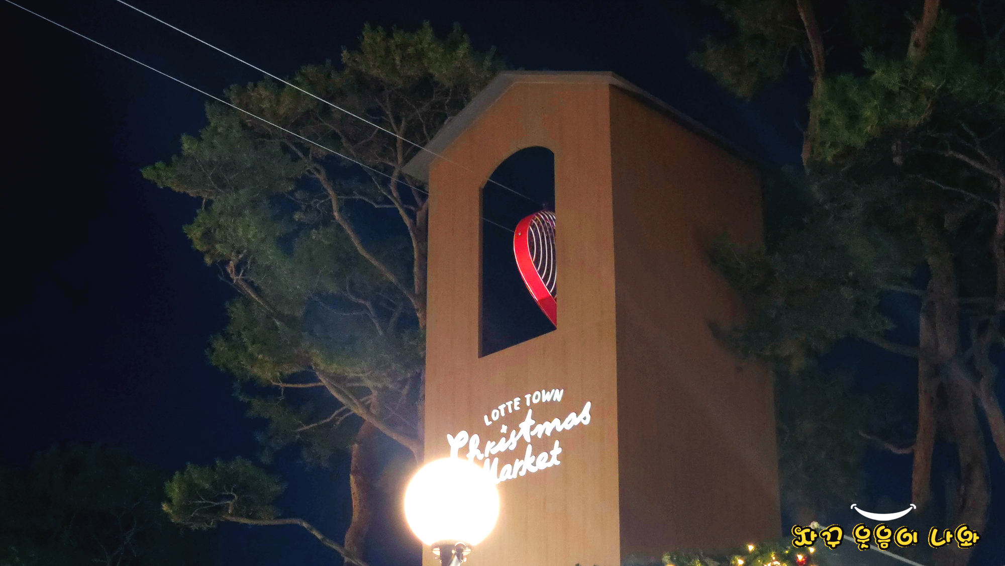 사진과 같이 탑 위에 있는 대형 하트가 트리쪽으로 이동하고 롯데타운 크리스마스 마켓 크리스마스 트리 점등식과 함께 눈이 내리는 쇼가 진행되는데요.