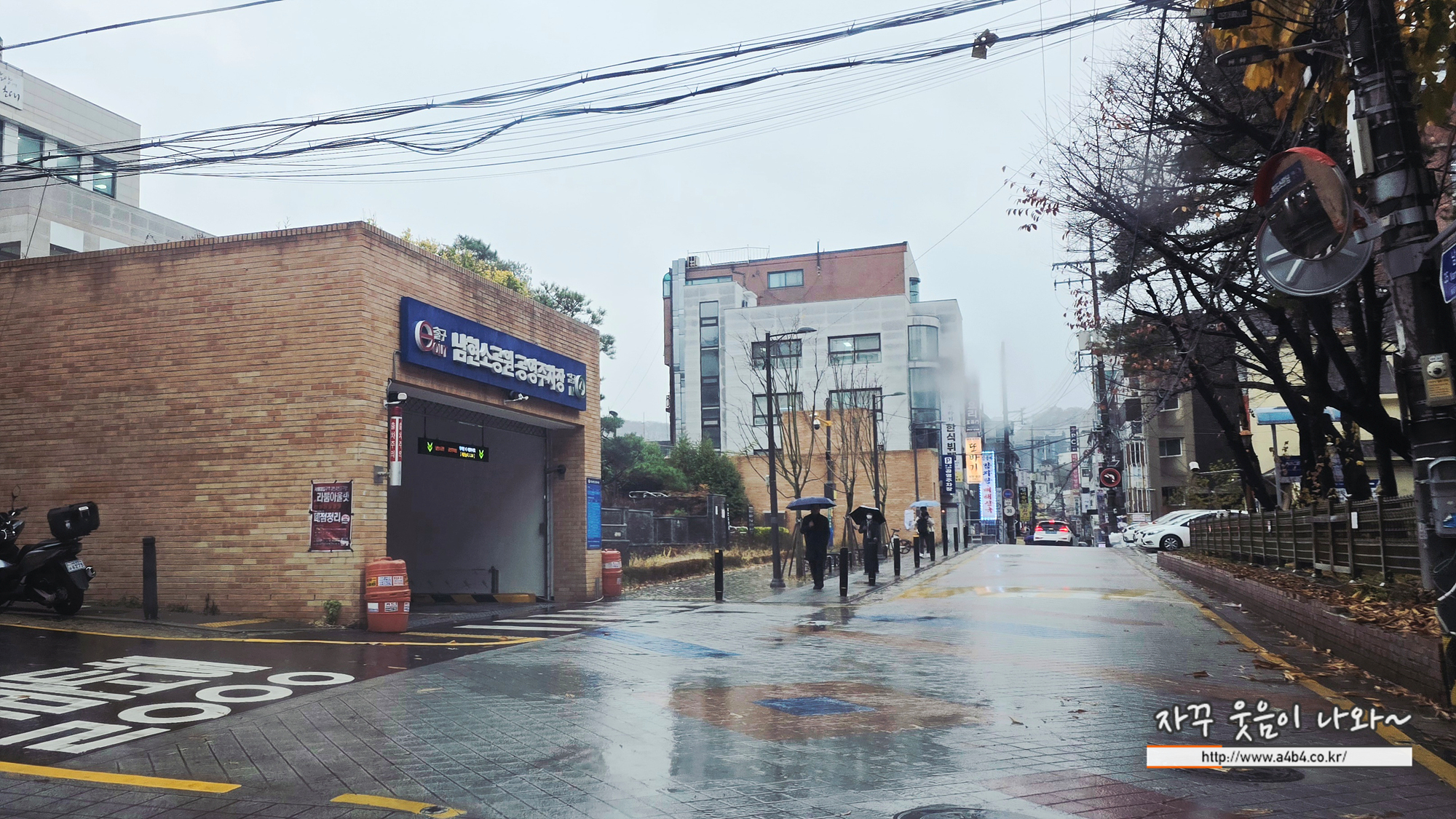 아래 사진과 같이 오른쪽 건물이 바로 서울시립 남서울미술관건물이고요. 건너편 왼쪽이 바로 오늘 소개하는 남현소공원 공영주차장입니다.