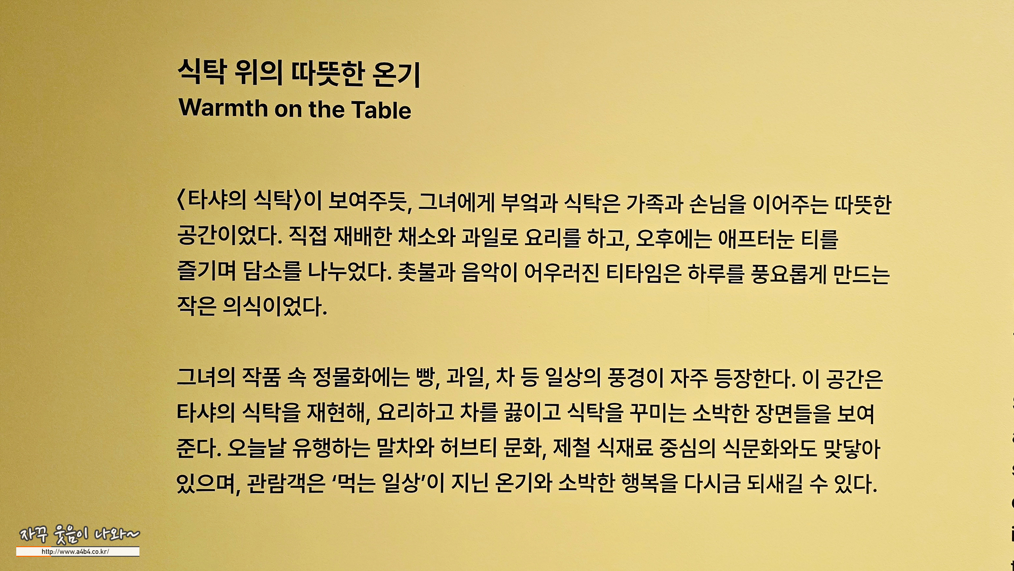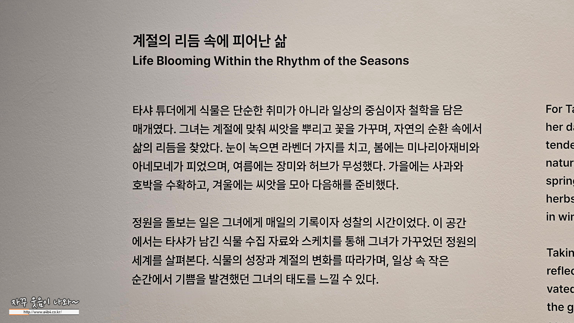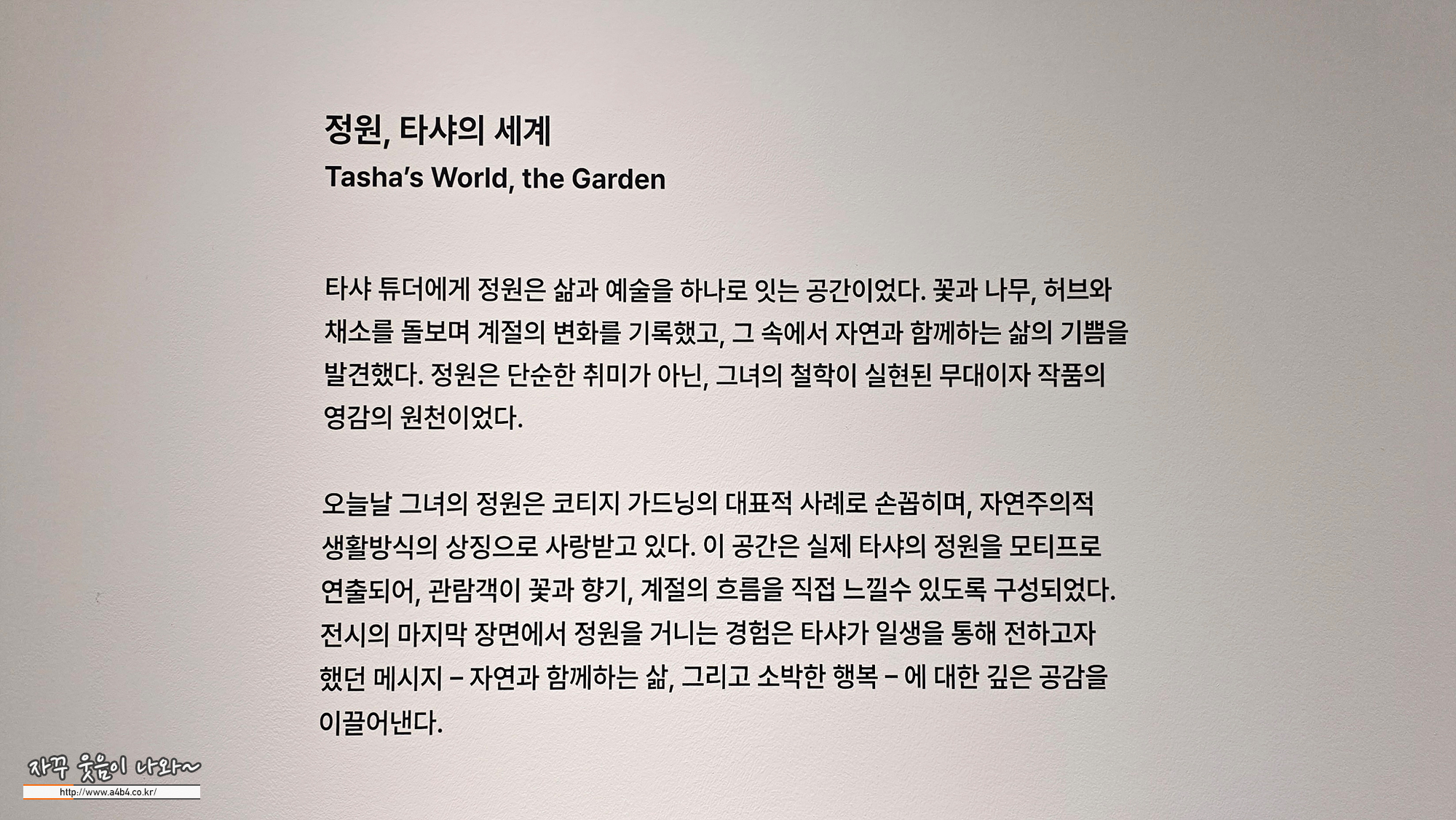 가능하시면 탸샤튜더 전시 도슨트 시간 맞춰 방문하시는 것을 추천 드립니다.