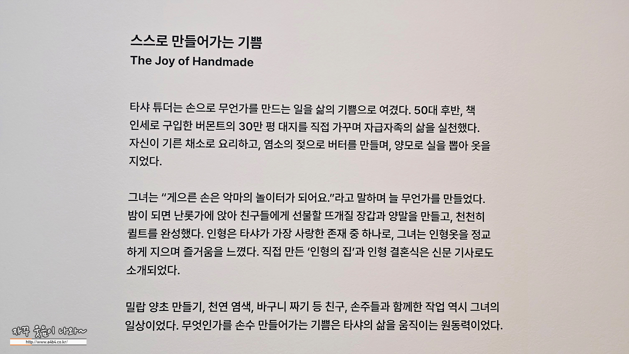 앞선 공간에서는 탸샤튜터와 함께한 동물과 식물 중심이었다면, 지금부터는 그녀의 가족과 이웃을 만나볼 수 있습니다.