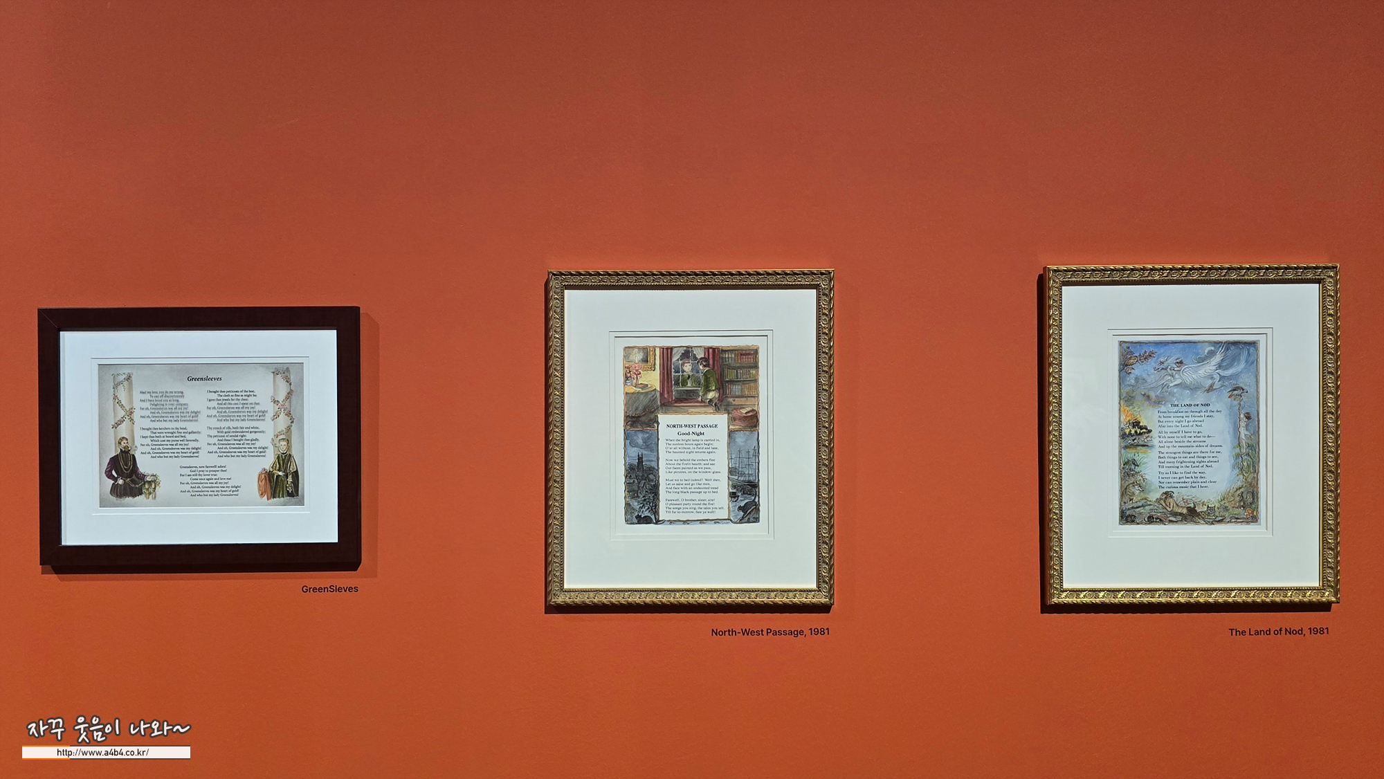 이번 Still, Tasha Tudor : 행복의 아이콘, 타샤 튜더 전시회에서 가장 좋았던 전시공간, 작품도 작품이지만 전시장 구성이 매우 좋았던... 색상과 느낌, 조명도...