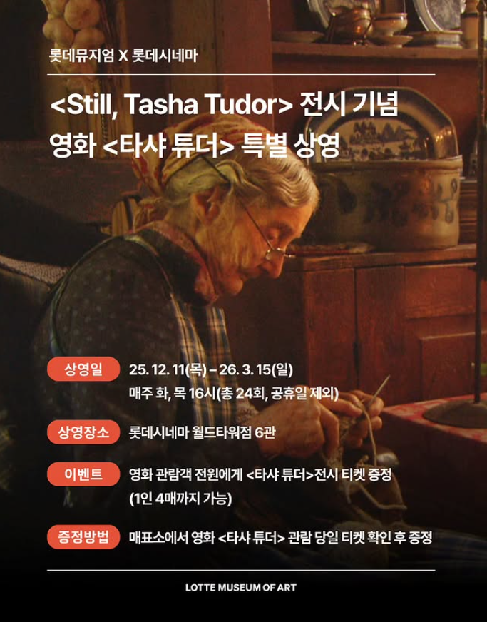 Still, Tasha Tudor : 행복의 아이콘, 타샤 튜더의 삶 전시회는 내년인 2026년 3월 15일 까지 전시예정입니다.