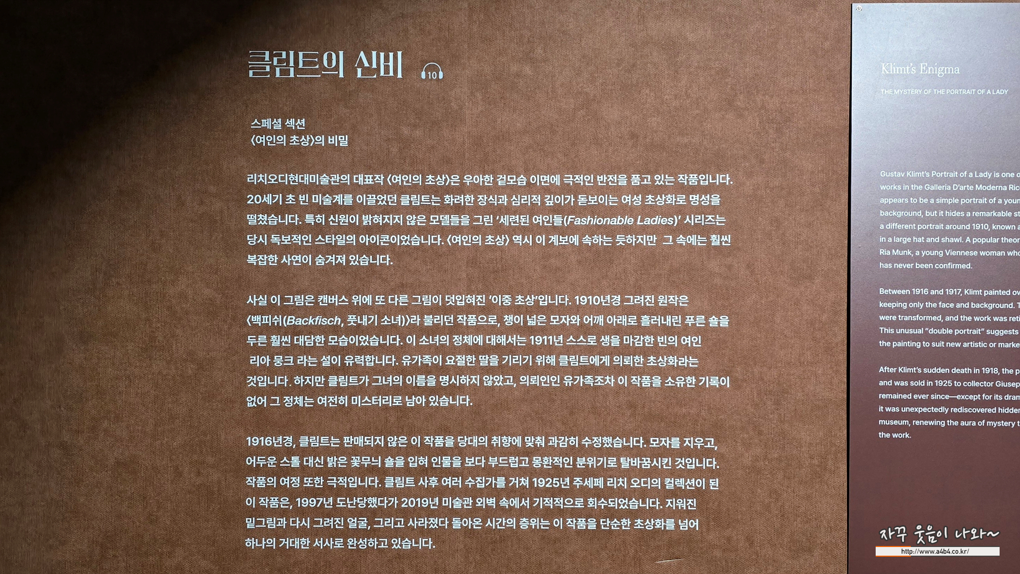 오디오가이드에서 다루는 작품에 대한 설명은 상당히 충실합니다. 이 부분은 만족할만 한데요. 다만 클림트와 리치오디의 기적 전시회 티켓과 오디오가이드 정가 구입하면 29,000원이 되는데요. 가이드가 그만큼의 가치가 있는지닌 모르겠네요.