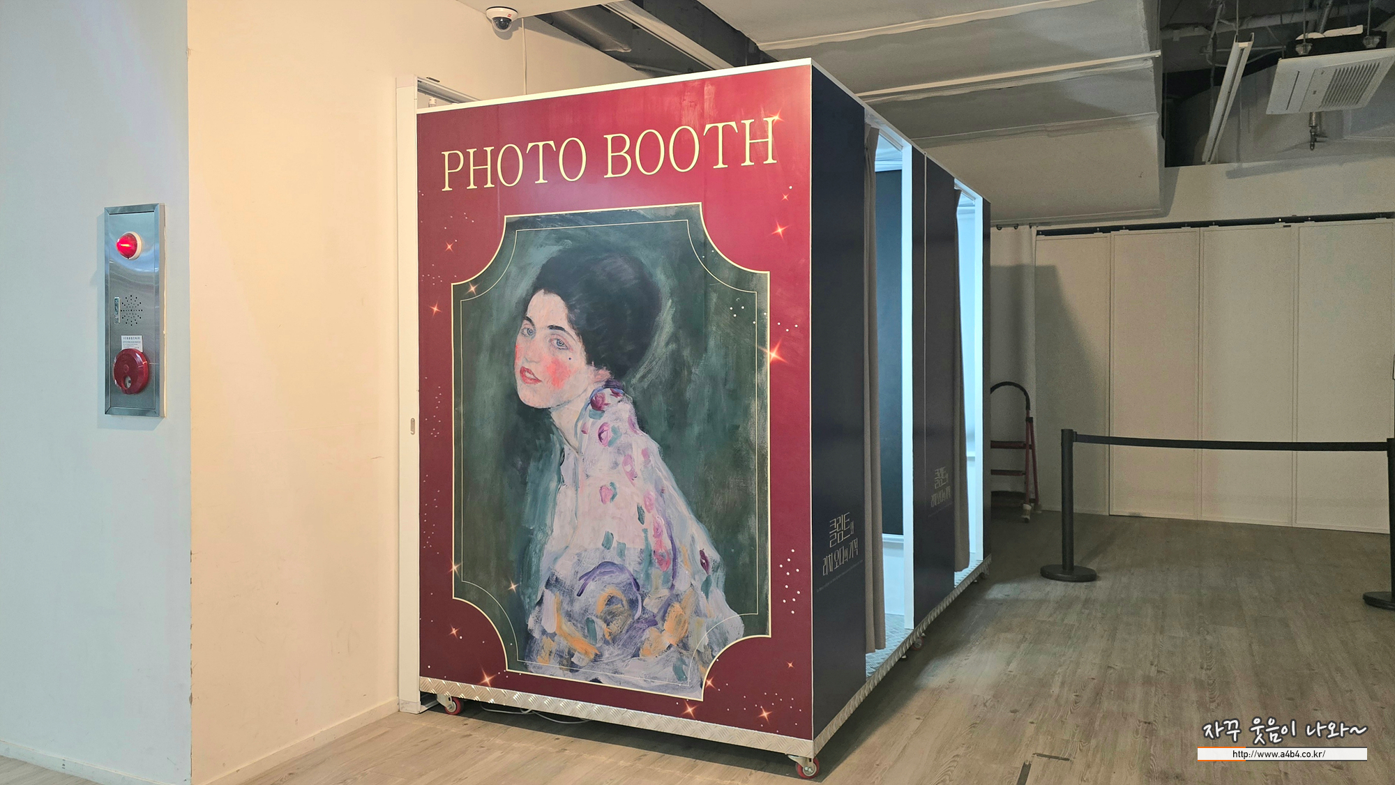 마이아트뮤지엄 한켠에는 포토부스가 마련되어 있는데요. 이번 클림트와 리치오디의 기적: 이탈리아 리치오디 현대미술관 컬렉션 전시회에 맞춘 인생네컷 포토부스가 유료로 운영되고 있습니다.