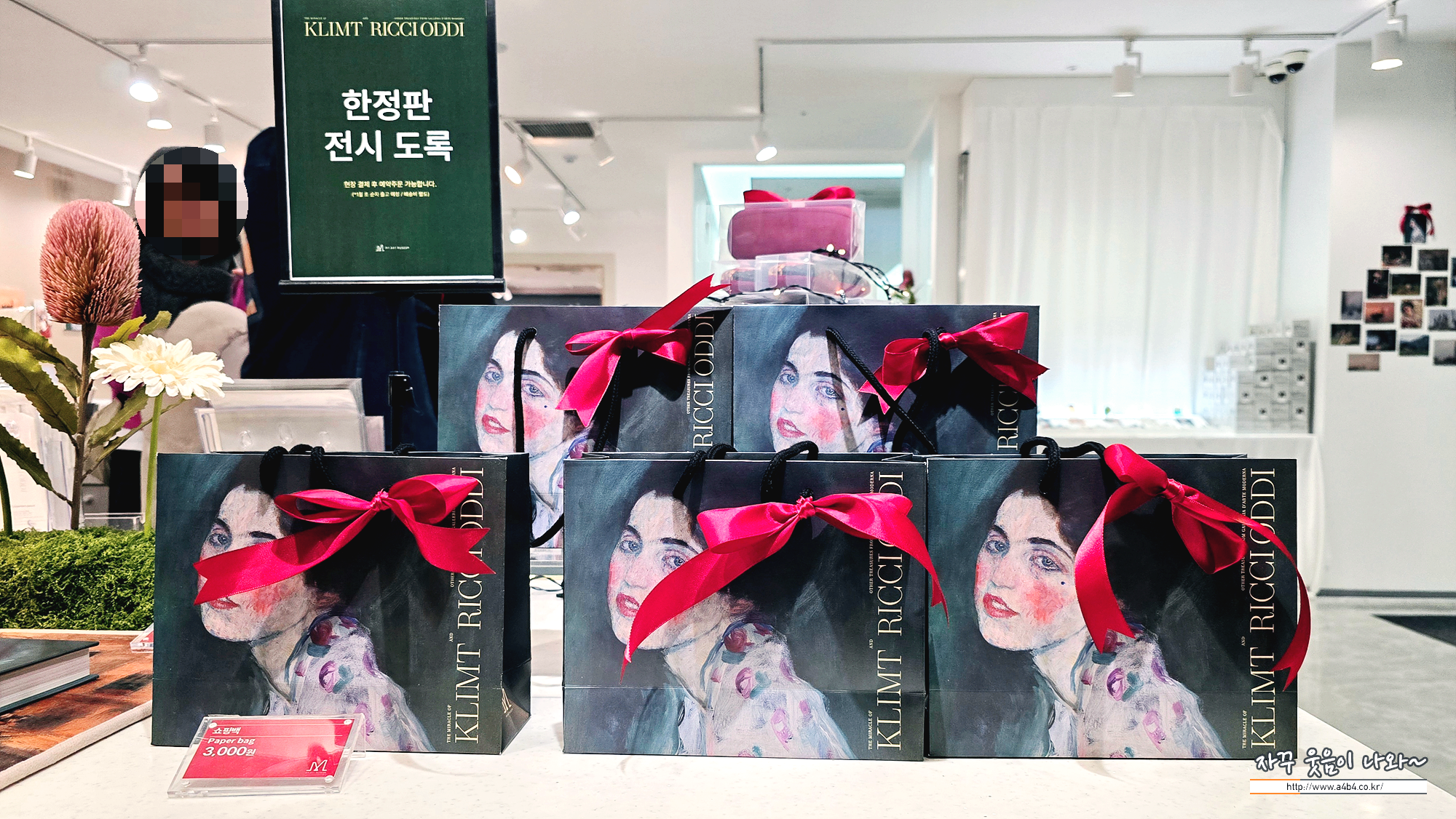 클림트와 리치오디의 기적: 이탈리아 리치오디 현대미술관 컬렉션 전시장을 나오자마자 보이는 굿즈는 바로 쇼핑백이네요. 가격은 3,000원. 다소 당황한 구성...