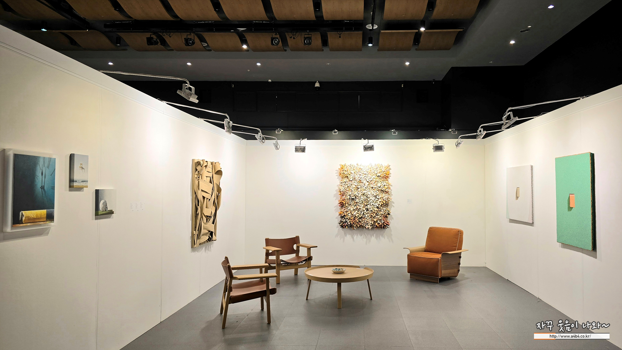 전시장 구성은 아트페어 느낌이 나게 구성되어 있습니다. 작가별 두 세점의 작품들이 전시되어 있는데요.