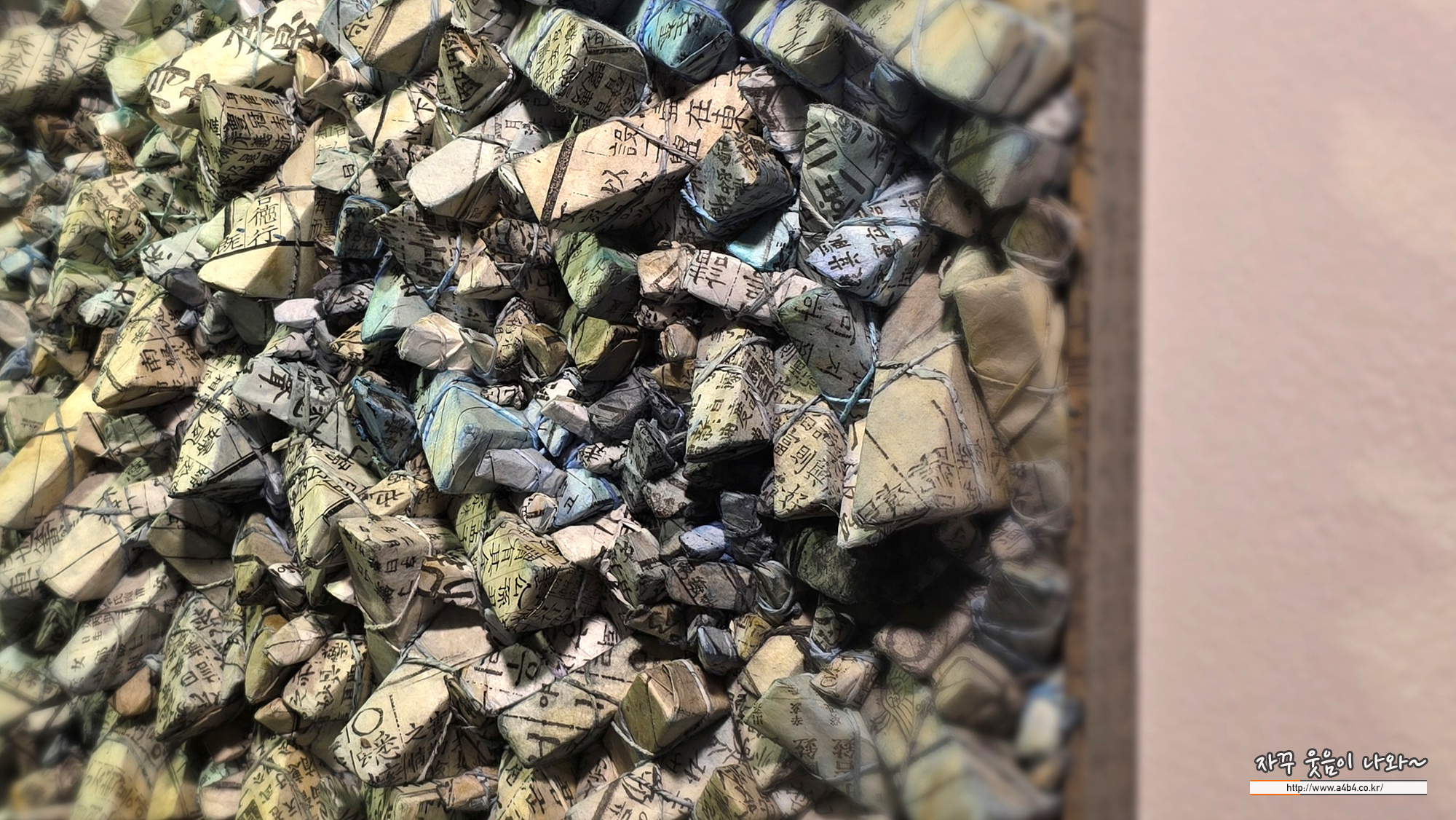 전광영 작가는 한약방의 약봉지에서 착안한 고서 한지를 활용하여 독창적인 ‘집합(Aggregation)’ 시리즈를 구축한 세계적인 현대 미술가입니다. 작가는 스티로폼을 삼각형 조각으로 자른 뒤 이를 고서 한지로 감싸고 끈으로 묶어 캔버스 위에 촘촘하게 배치함으로써, 동양적 서사와 서구적 추상을 완벽하게 결합했다는 평가를 받습니다.