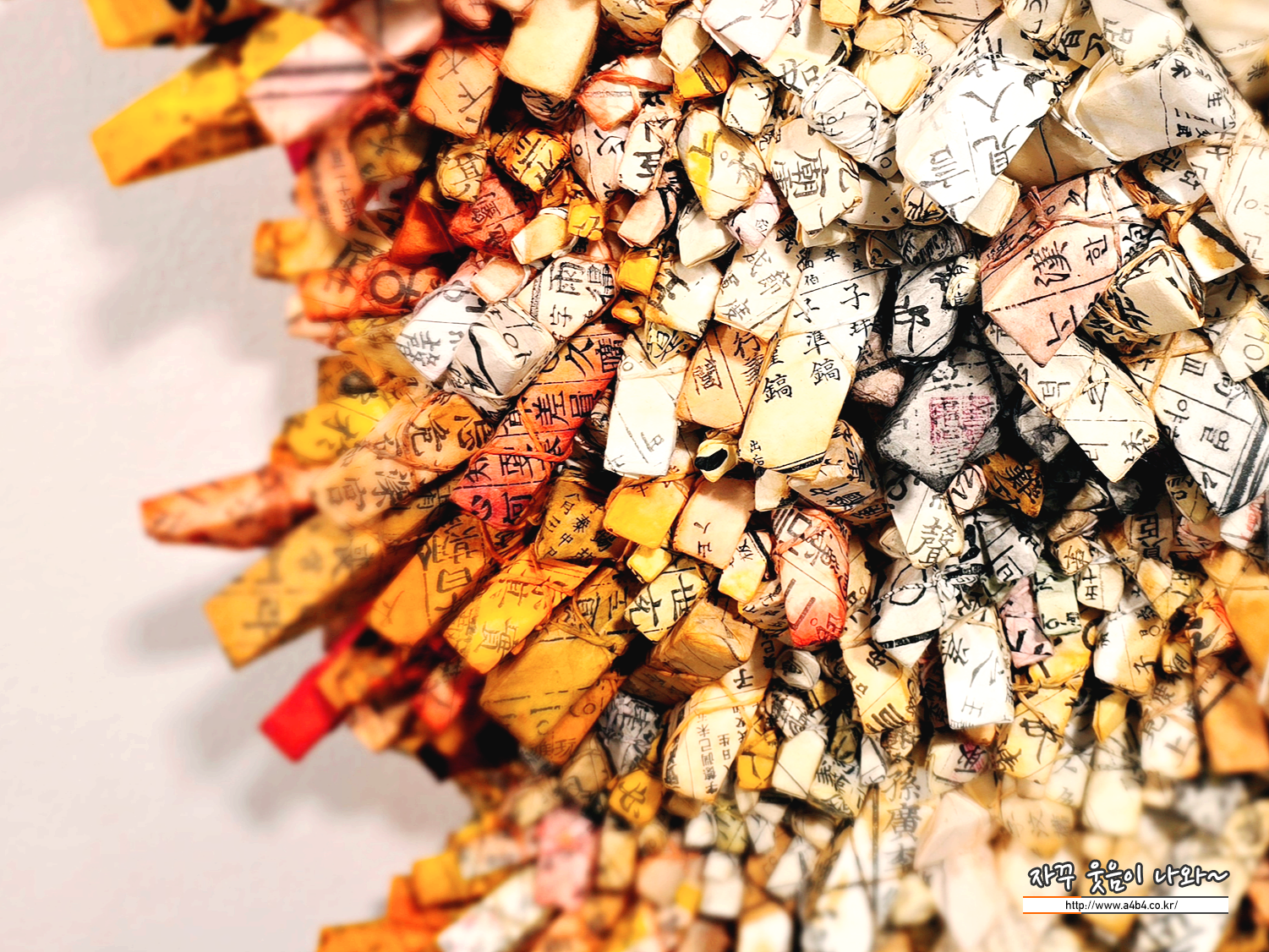 한지 조각들이 모여 형성하는 거대한 분화구 혹은 유기적 지형 같은 형상은 개별적인 삶의 파편들이 모여 거대한 역사를 이루는 생명의 역동성과 시간의 축적을 상징합니다. 특히 세월의 흔적이 담긴 고서의 글귀들은 작품에 다층적인 의미를 더하며, 관람객에게 한국적 정체성과 함께 보편적인 인류의 서사를 사유하게 하는 명상적 깊이를 선사합니다. 이처럼 전광영은 가장 한국적인 소재를 현대적인 조형 언어로 재해석하여 국제 미술계에서 독보적인 예술적 위상을 확립하고 있습니다.