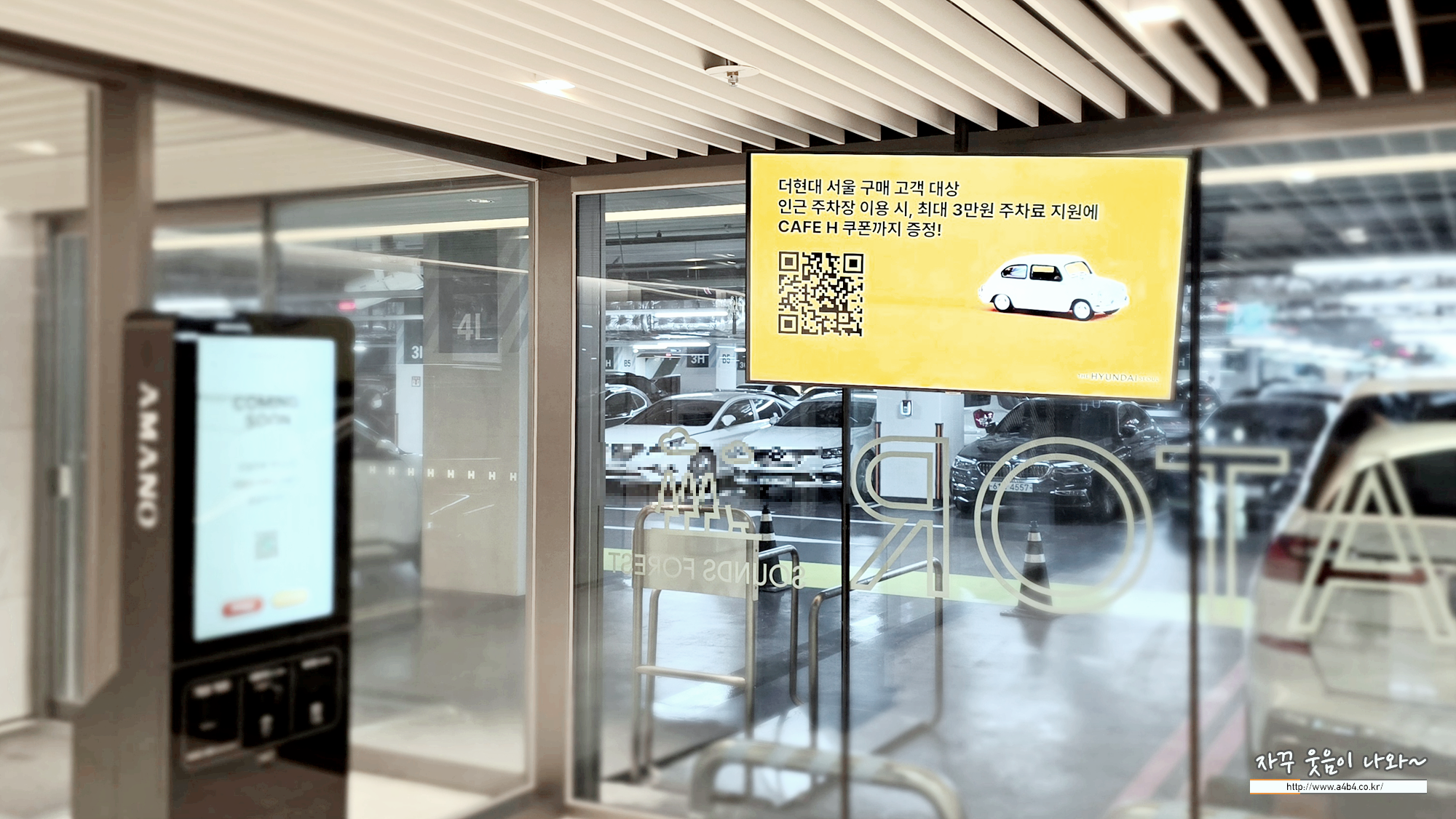 출차시 아래 주차장 무인정산기에서 정산하시면 되는데요. 스타벅스 더현대서울R점(B2)의 경우 주차정산 미지원 매장입니다.