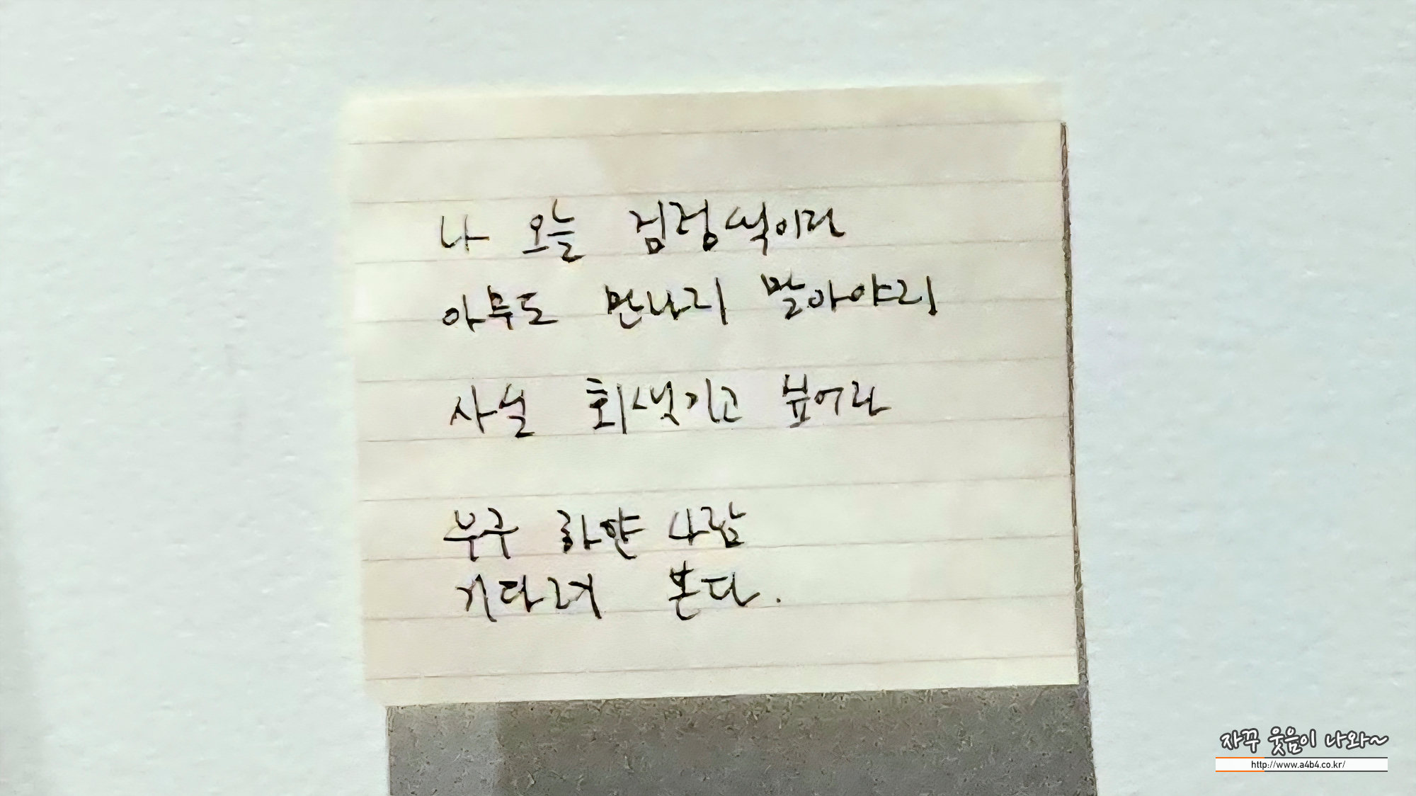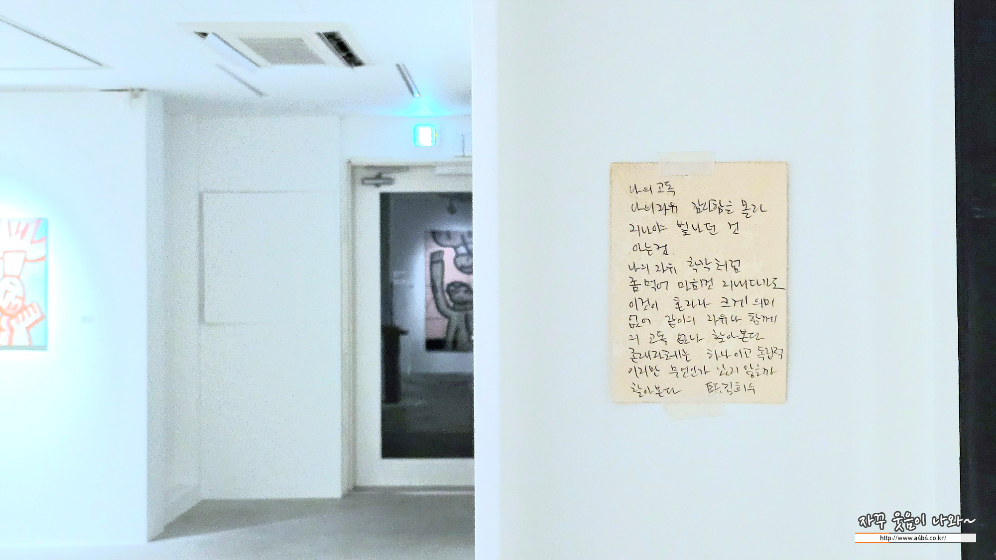 에브리데이몬데이 갤러리 2층 구석 벽면에 작가 메모가 붙어 있습니다.