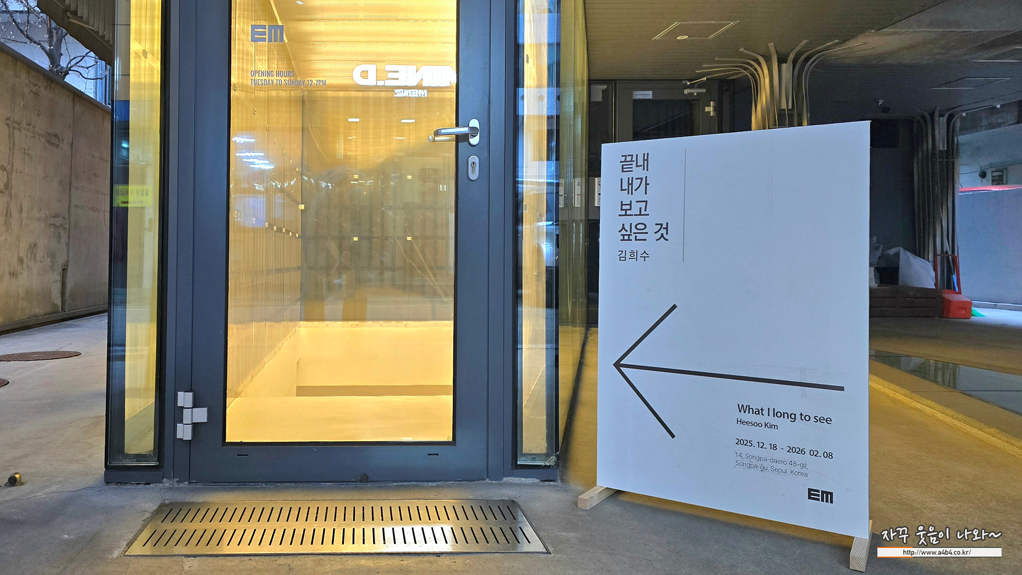 오늘 소개한 송리단길 에브리데이몬데이 갤러리에서 열리고 있는 김희수 개인전 '끝내 내가 보고 싶은 것'은 내년 2026년 2월 8일까지 열릴 예정입니다. 잠실 롯데월드몰이나 타워, 석촌호수 방문하신다면 꼭 방문하시는 것을 추천 드립니다.