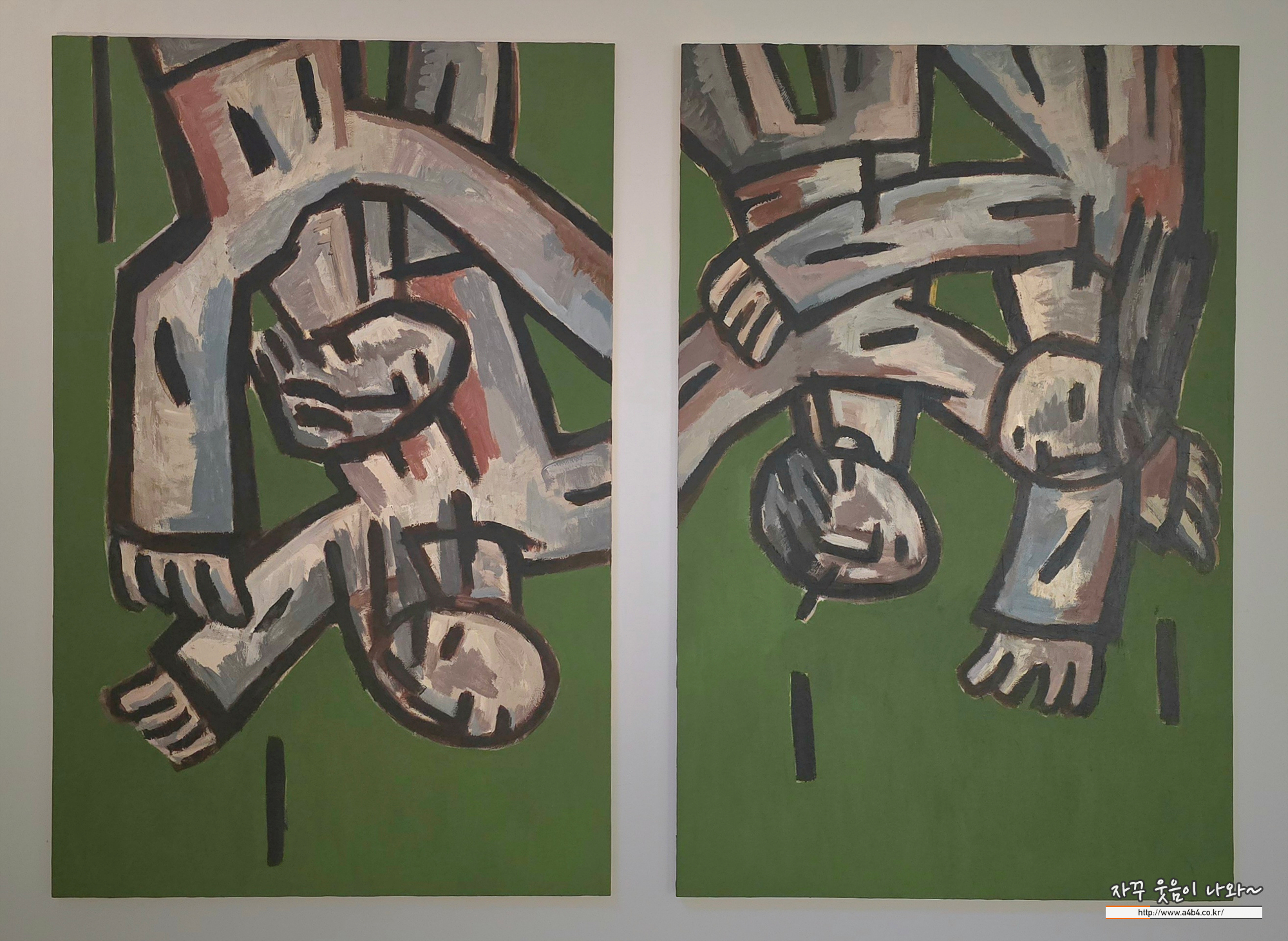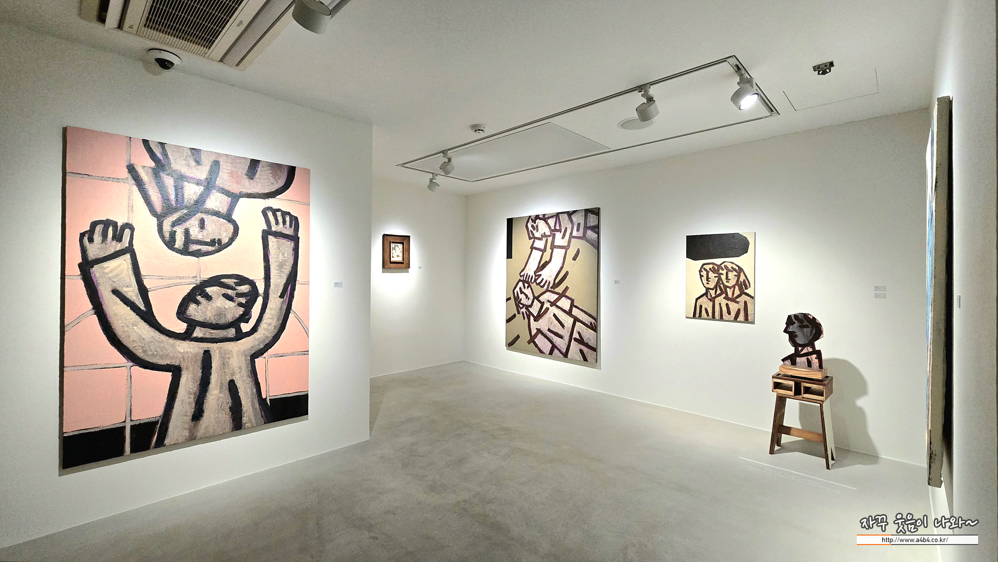 이번 전시회 작품은 회화와 조각작품으로 구성되어 있는데요. 회화작품은 캔버스에 아크릴 물감으로 작업했습니다. 거칠고 굵은 선이 너무나도 인상적인 작품들...