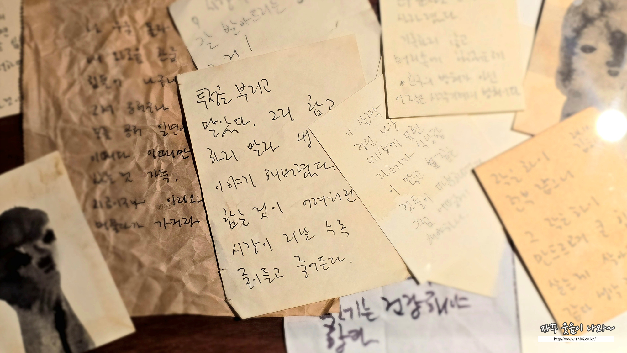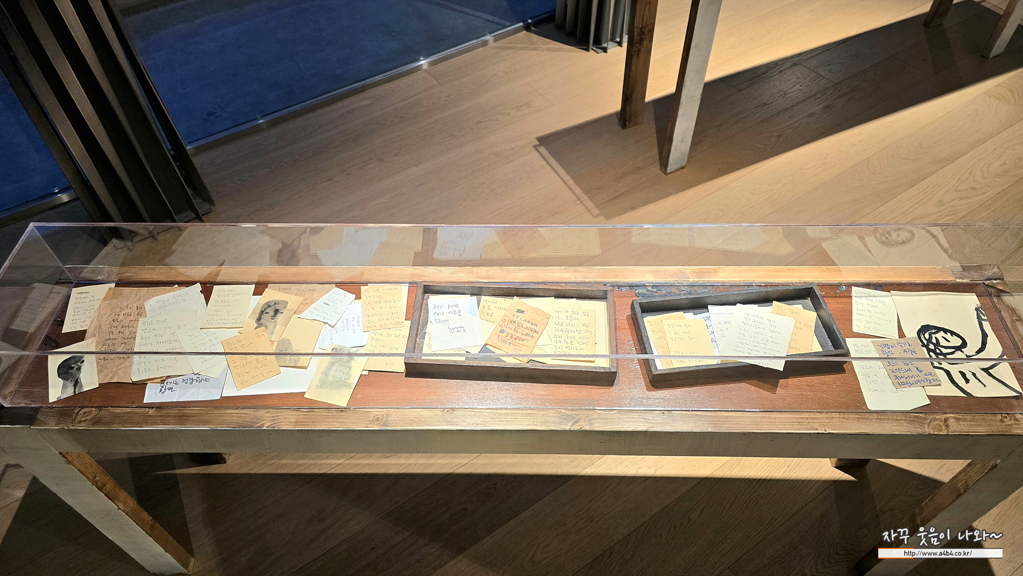 노트에 메모장에 따로는 정수기 물컵 종이에... 이렇게 작가와 대화하는 것도 상당히 재미있는...