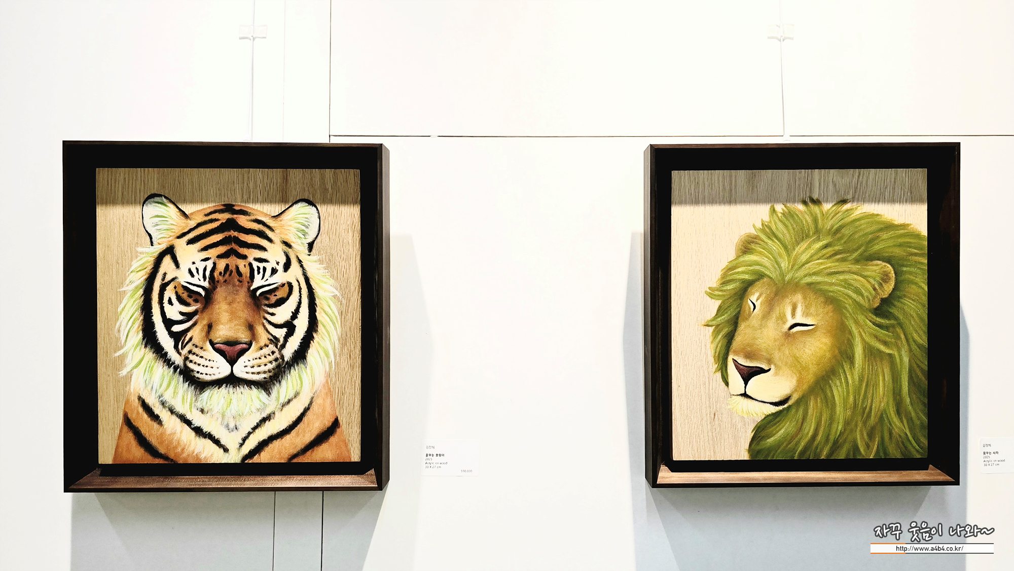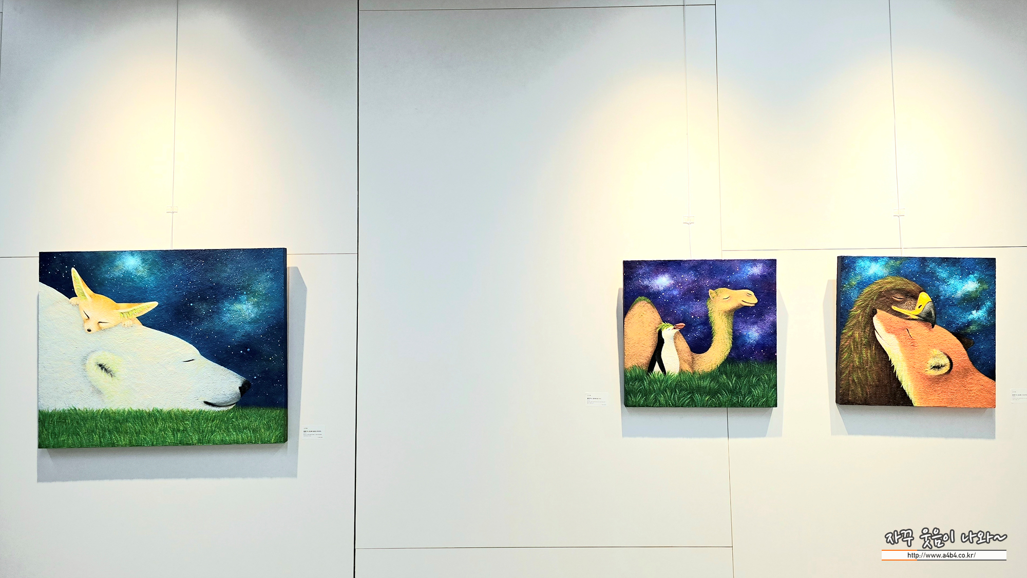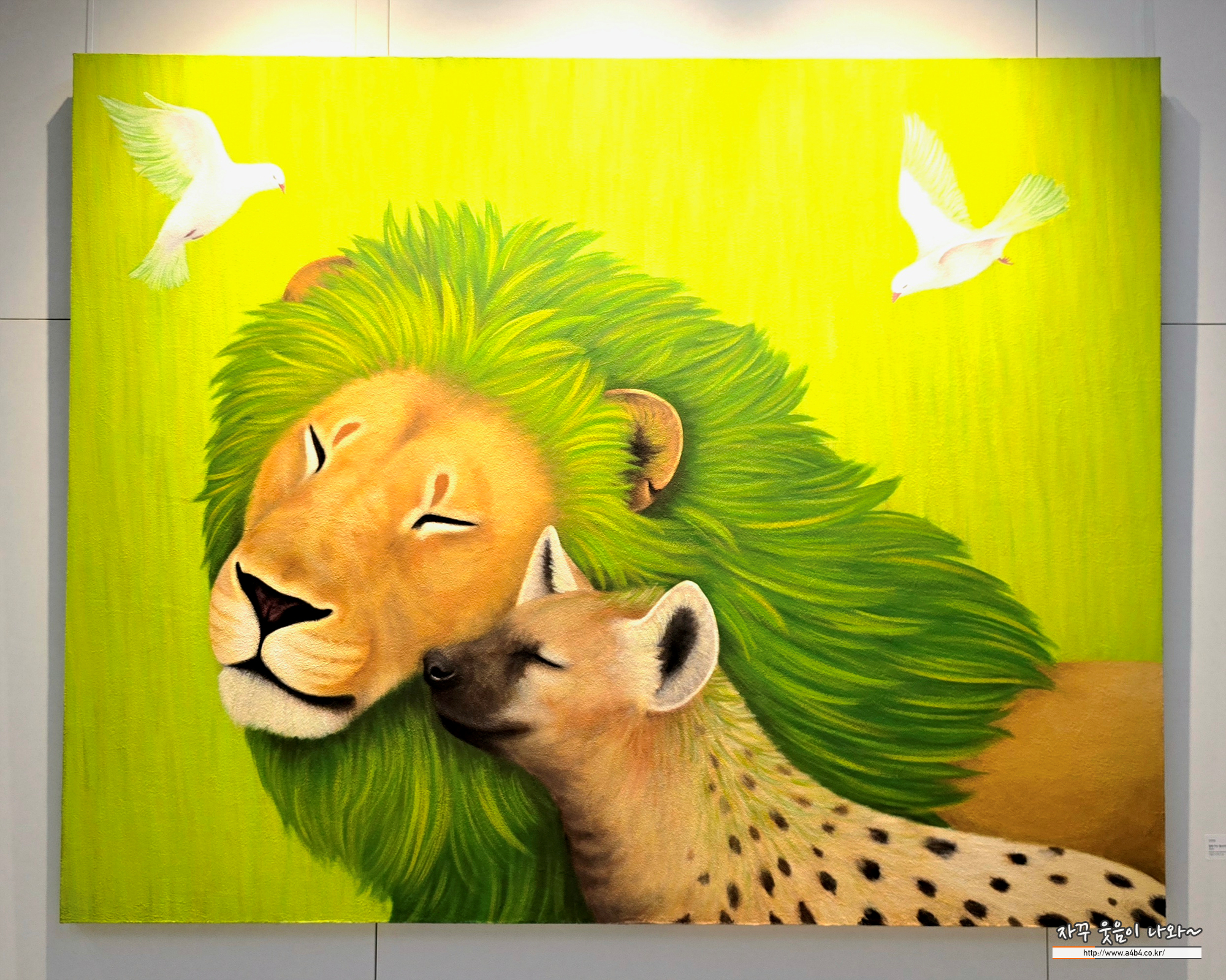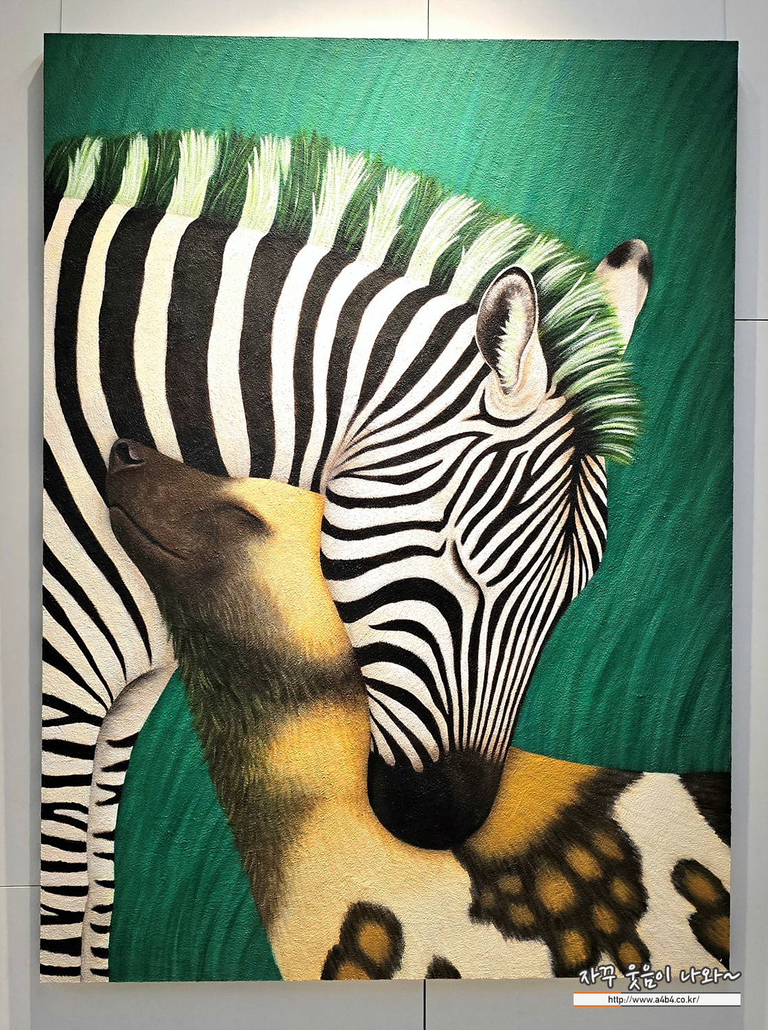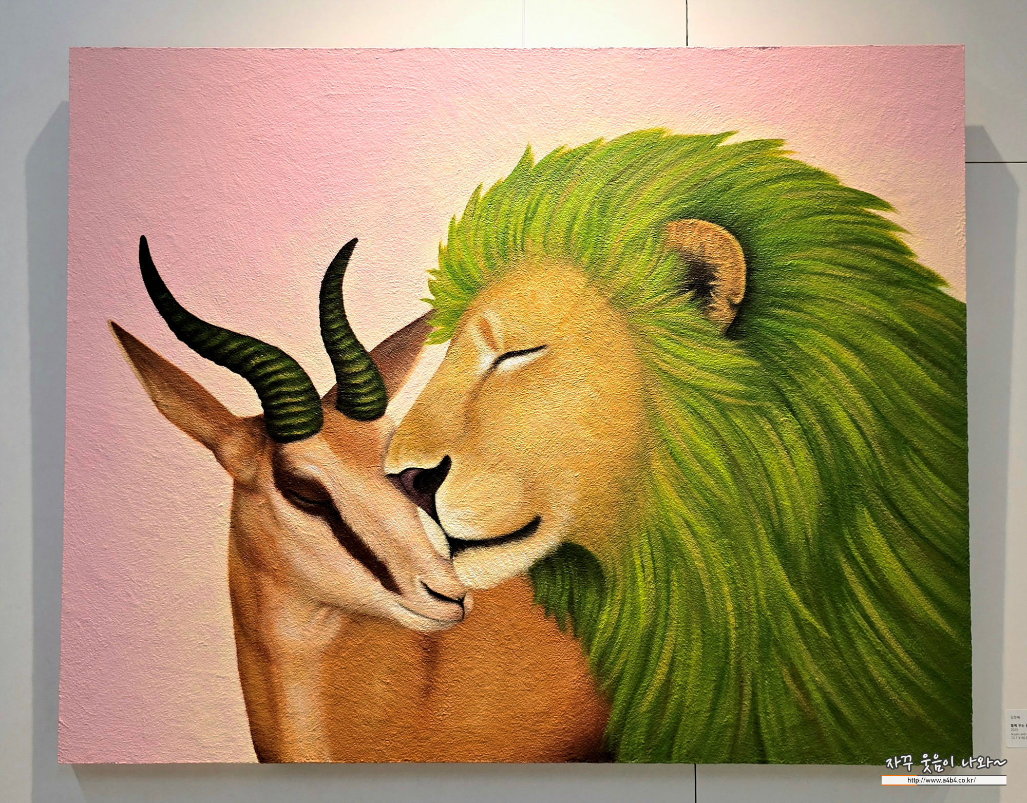 이번 전시회에는 회화 작품과 목조형 작품 약 30점을 만나볼 수 있는데요. 동물을 통해 조화와 사랑을 이야기하는 작가의 메시지를 느껴볼 수 있습니다.