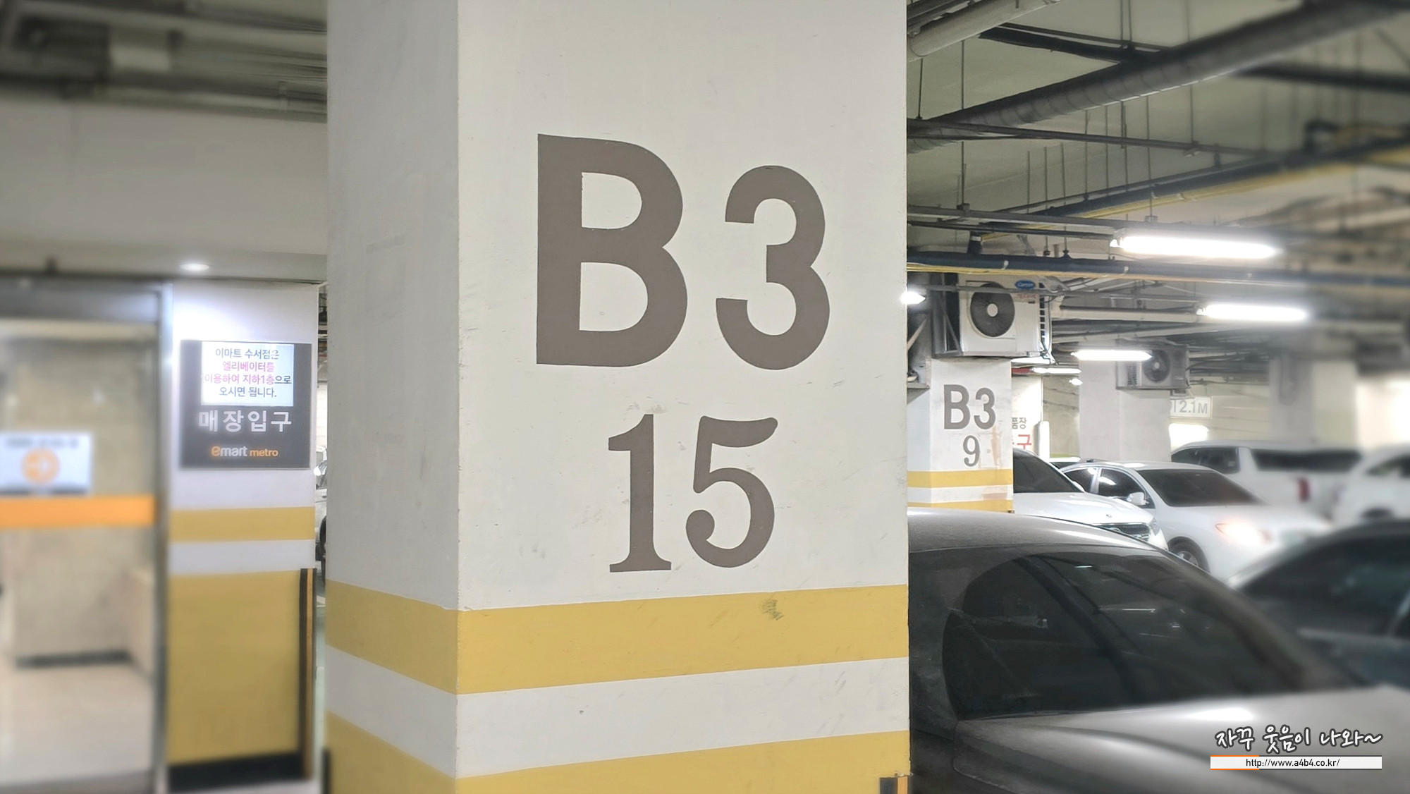 이마트 수서는 지하 1층에 위치해 있고요. 주차는 지하 3층부터 가능합니다.
