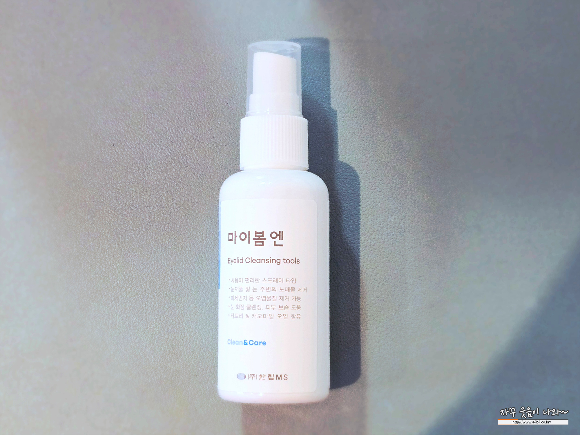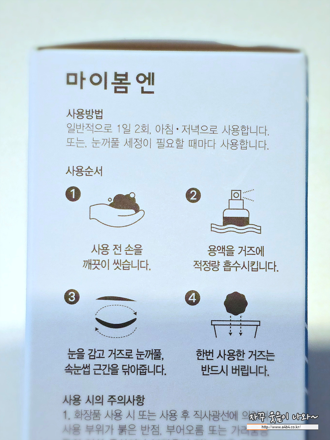 매끄러운 부분에 마이봄엔 스프레이 뿌리고 눈가를 닦는 방식으로 사용합니다.