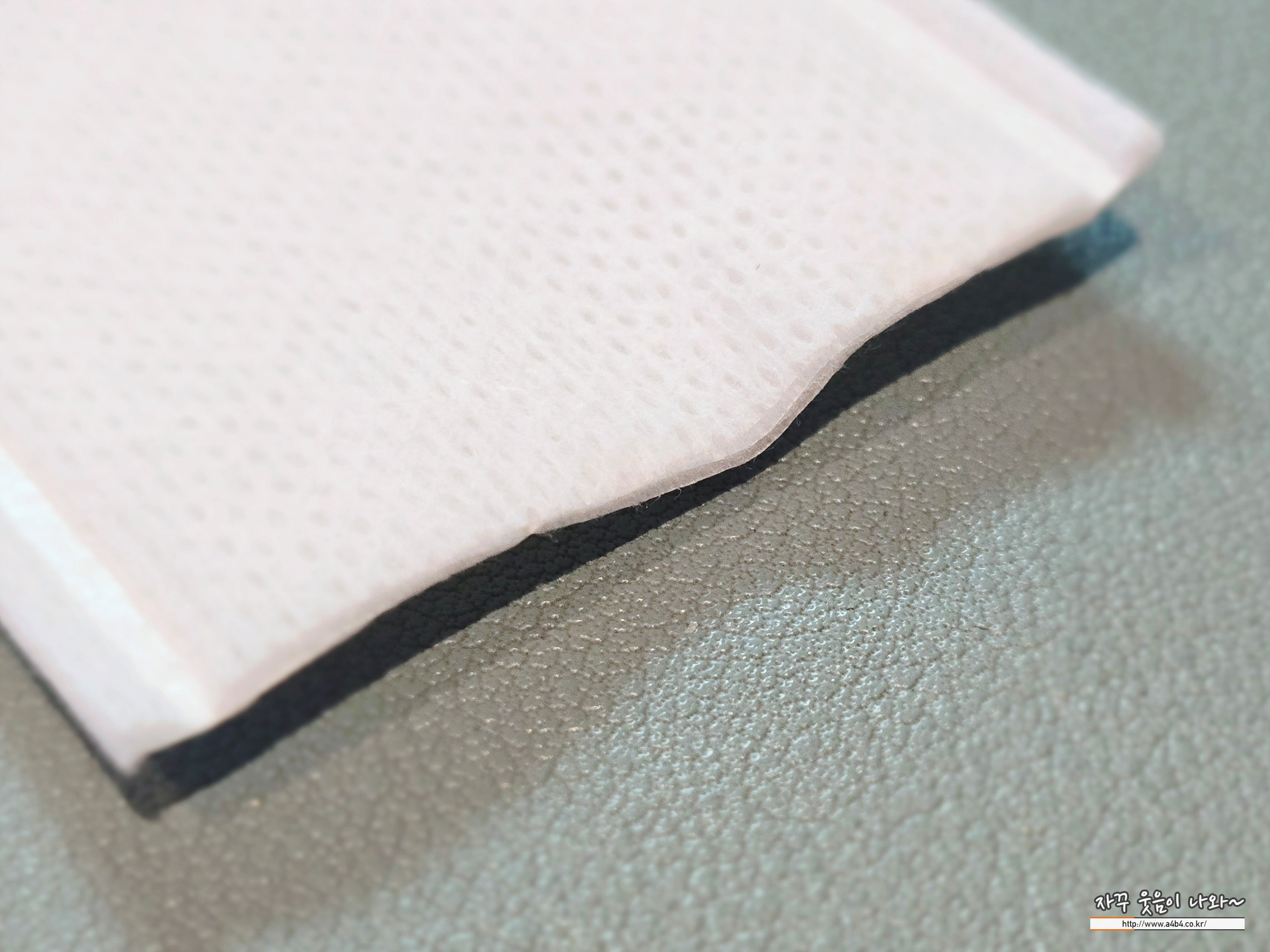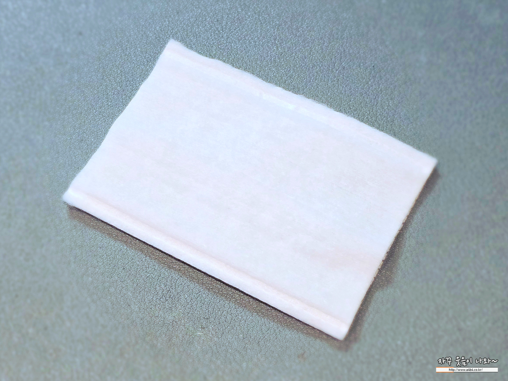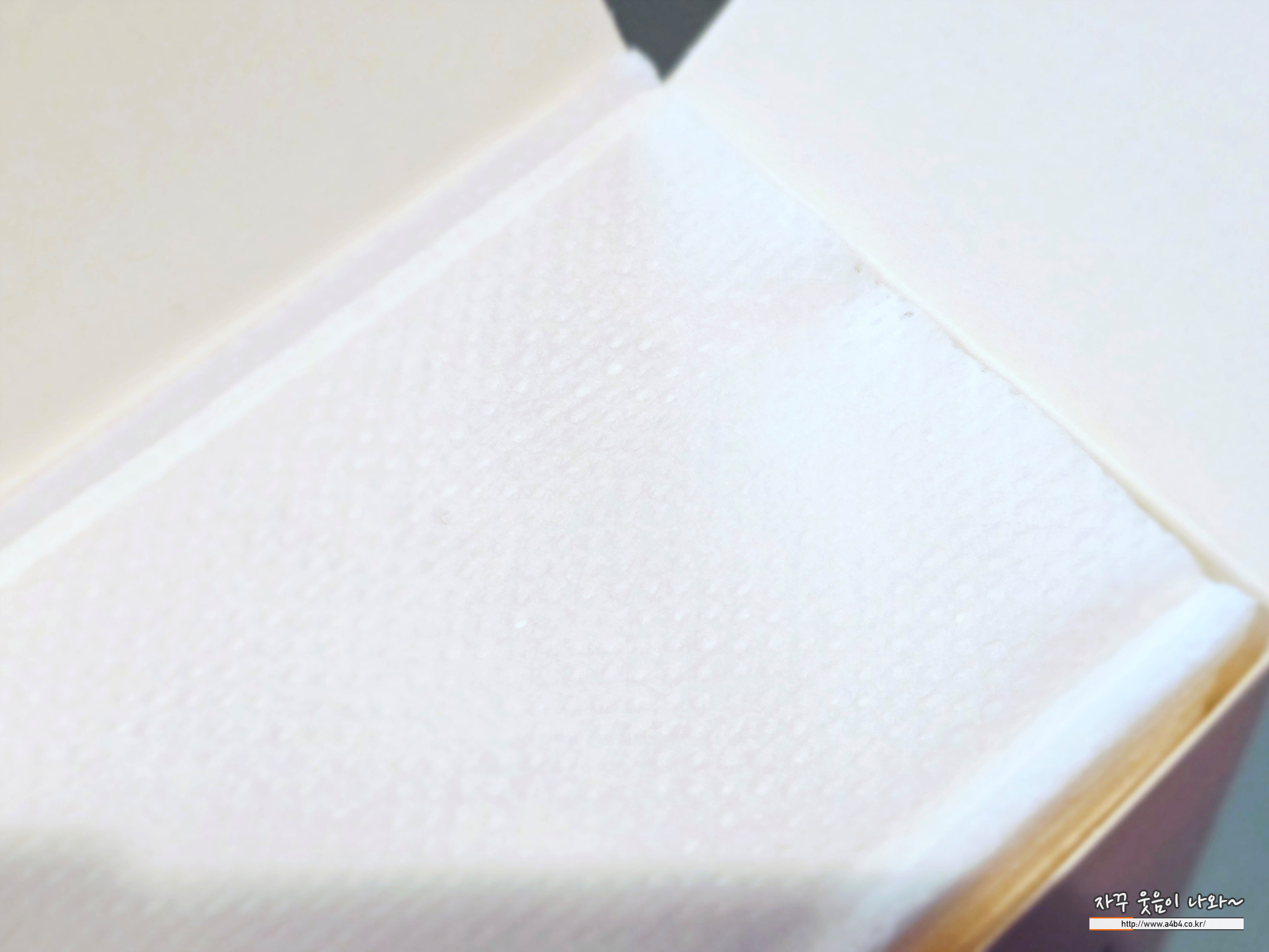 3겹 두툼한 화장솜이 들어 있는데요. 한 면은 약간 부드러운, 다른 한 면은 매끄러운 촉감을 보입니다.