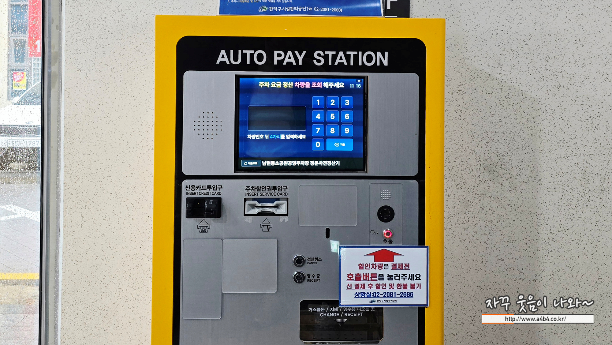 주차장은 무인으로 운영되고 있으며, 출차시 주차장 1층에 있는 주차요금 정산기에서 사전정산 후 출차하시면됩니다. 현금 사용불가하고 신용카드나 삼성페이 결제 가능합니다. 남현소공원 공영주차장 애플페이 사용여부는 확인하지 못했습니다.