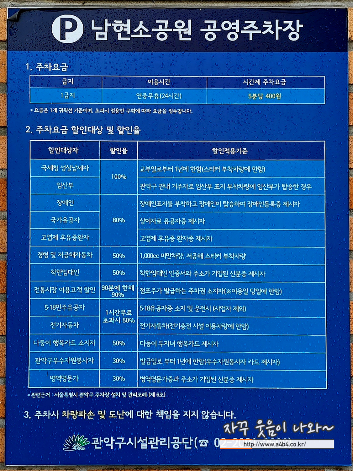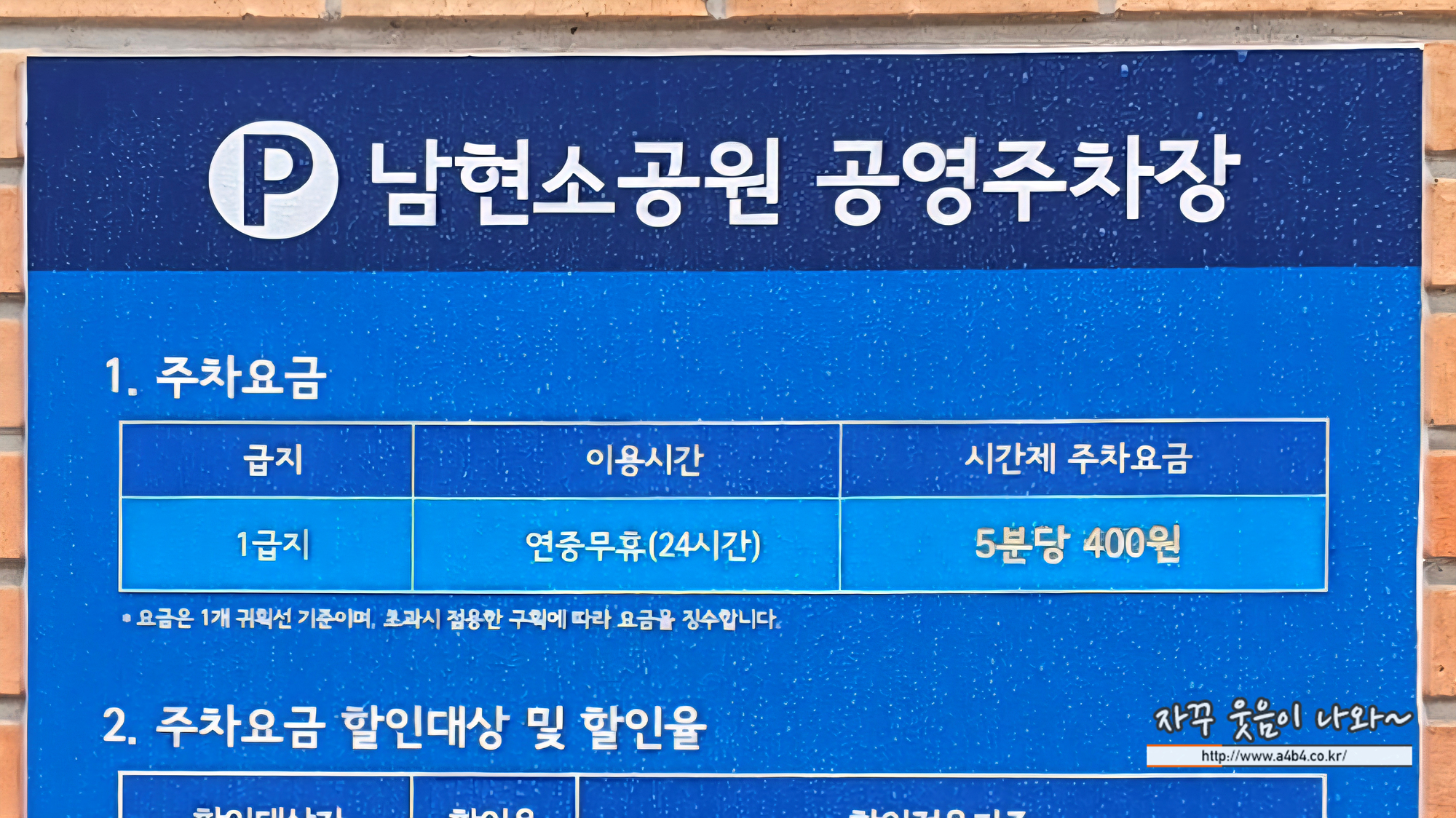 | 남현소공원 공영주차장 주차요금 및 할인정보