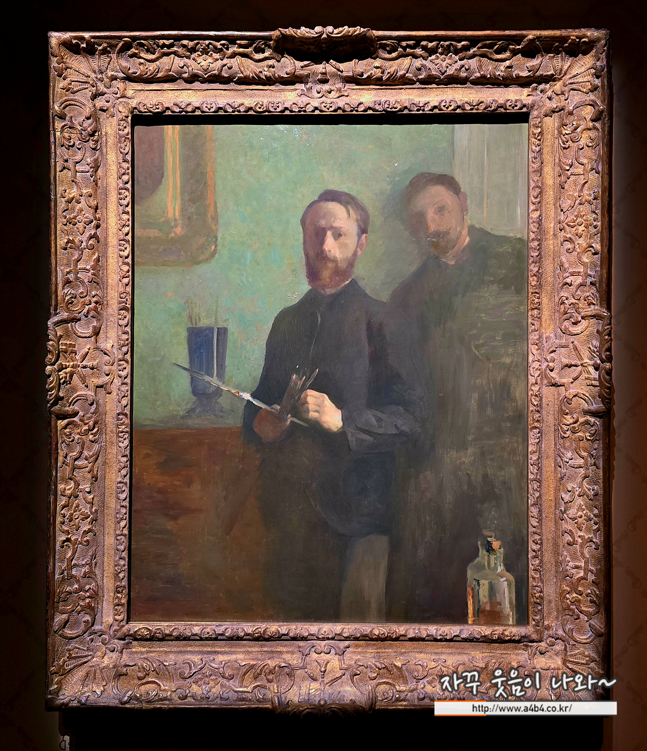 뷔야르는 스물한 살에 이 신비로운 분위기의 자화상을 그렸다. 이 시기 그는 아카데미 양식을 넘어 감각적인 상징주의로 나아갔다. 현실을 사실적으로 그리기보다 색과 무늬를 활용해 실내와 일상 풍경을 장식적인 공간처럼 구성했다. 이 공간에 전시된 다른 작품에서도 뷔야르가 일상을 바라본 특별한 시선을 만날 수 있다.