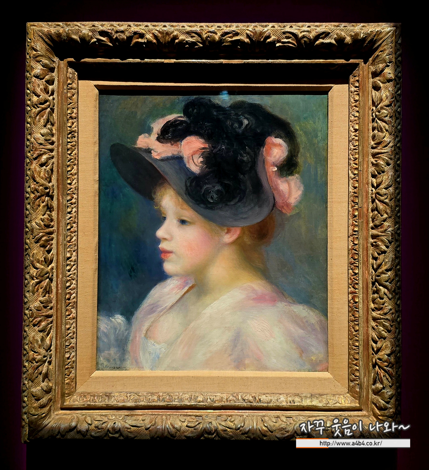 인상주의를 대표하는 화가 오귀스트 르누아르는 감각적인 색채와 부드러운 화풍으로 널리 알려져 있다. 1890년대 대중의 인기를 얻으며, 르누아르는 세련된 모자를 쓴 젊고 아름다운 여성을 자주 그렸다. 이 작품에서 그는 다채롭고 풍부한 색감을 마음껏 사용했고, 각 색은 세밀한 변주로 다양한 색조로 표현되었다. 소녀의 옆얼굴과 모자의 부드러운 곡선이 자연스럽게 어우러져 우아한 분위기를 연출한다.